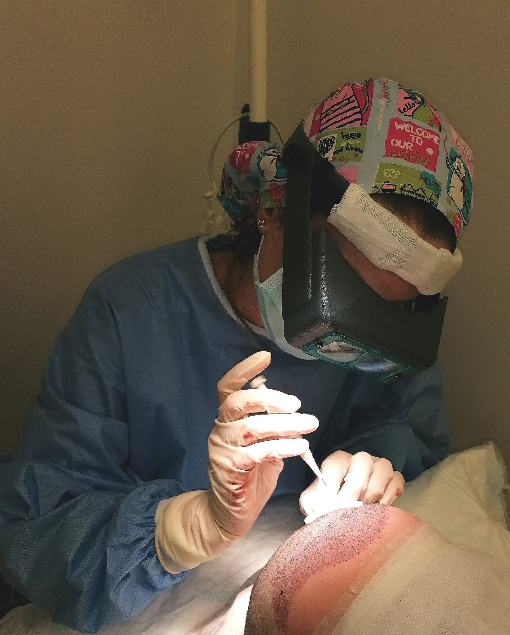 As unidades foliculares são retiradas do couro cabeludo com o auxílio de pinças extremamente delicadas. A quantidade de unidades foliculares extraídas varia de paciente para paciente, conforme a densidade da zona doadora e a quantidade necessária para cobertura da zona calva.