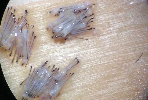 Imediatamente depois de serem extraídas, todas as unidades foliculares são colocadas numa solução de armazenagem apropriada. Isto é essencial para a manutenção da vitalidade dos folículos.