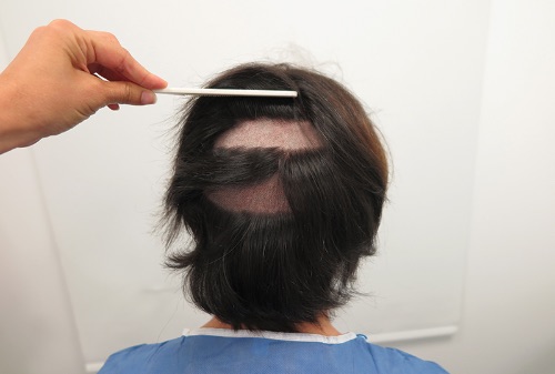 Com marcadores especiais, os limites da zona doadora (a zona que vai doar os fios de cabelo) e os limites da zona recetora (a zona que vai receber os cabelos) são desenhados.
